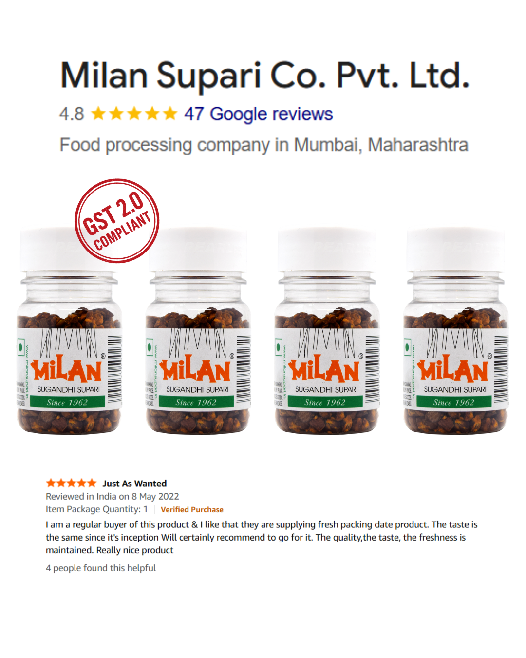 Milan Supari is one India's most loved food products. It has a one-of-a-kind taste that instantly refreshes you. Enjoy Milan Supari in your daily routine - at work, while travelling or with friends and family.