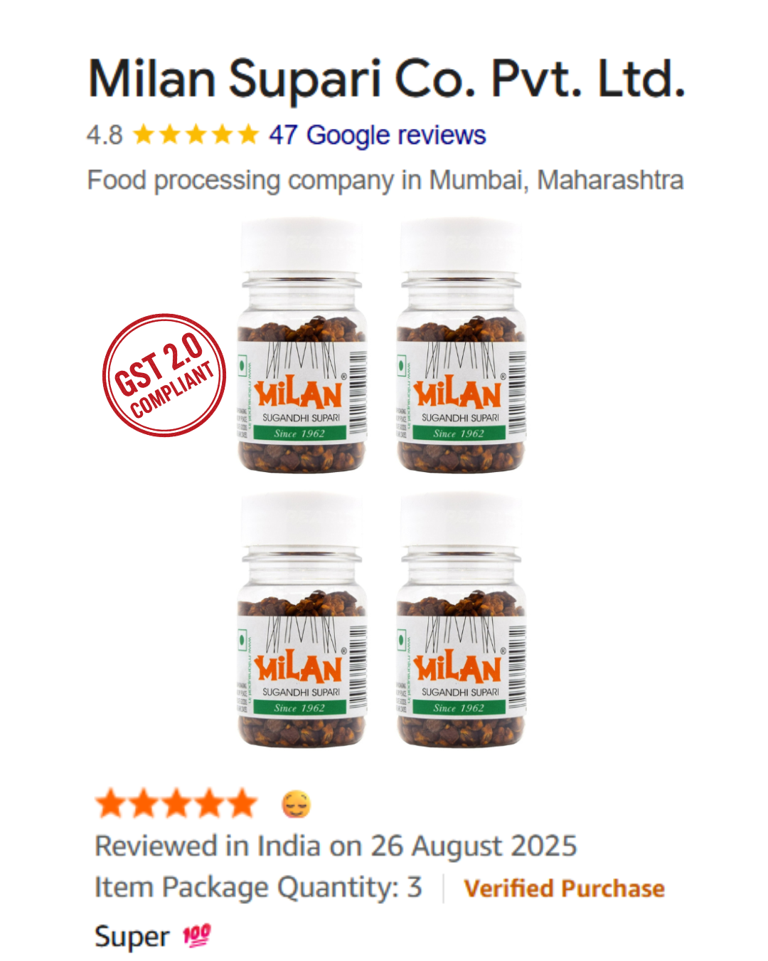 So whether you’re enjoying a break from work or spending time with family and friends, you can enjoy Milan Supari products anytime, anywhere!